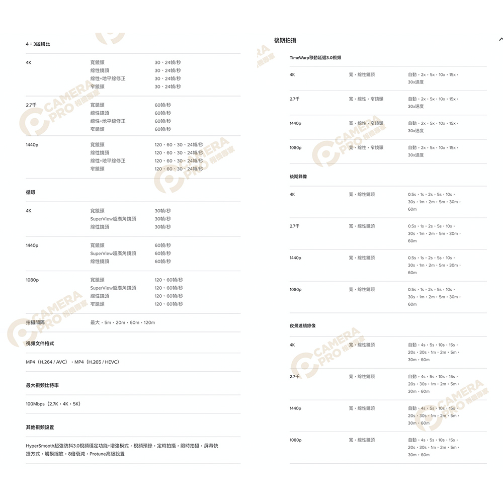 ■ 影片:5K30、4K60、2.7K120、1440p120、1080p240 等
