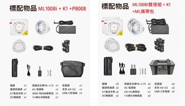 ■ML100Bi 雙燈組 + K1 +ML攜帶包