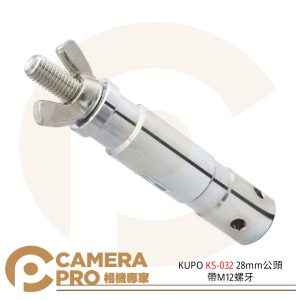 28 mm的鐵鍍鉻連接件,帶有M12的螺牙和蝶型旋鈕,可以直接安裝在燈具手把上,使其可連接至帶有業界標準燈光腳架的28 mm母座上。底部帶有安全插銷孔,降低掉落意外的風險。