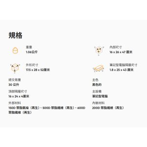 •3 個外部彈性口袋,可放置水瓶和三腳架