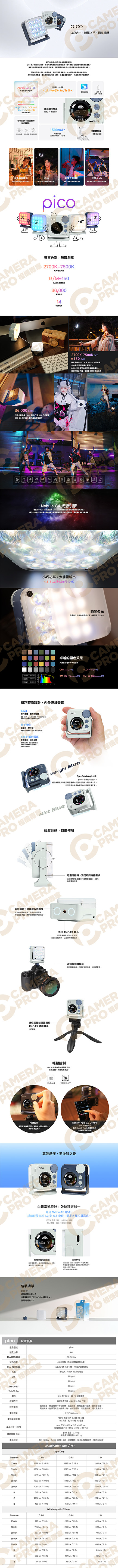 Nanlite Pico 超迷你 RGBW 補光燈,搭載 Nebula C4 光引擎,支援 2700K–7500K 色溫、360° 色彩調整與 14 種特效,內建電池續航 6.5 小時,支援 USB-C 充電與 Nanlink App 控制,磁吸設計搭配可翻支架,是攝影師與創作者的便攜補光首選。