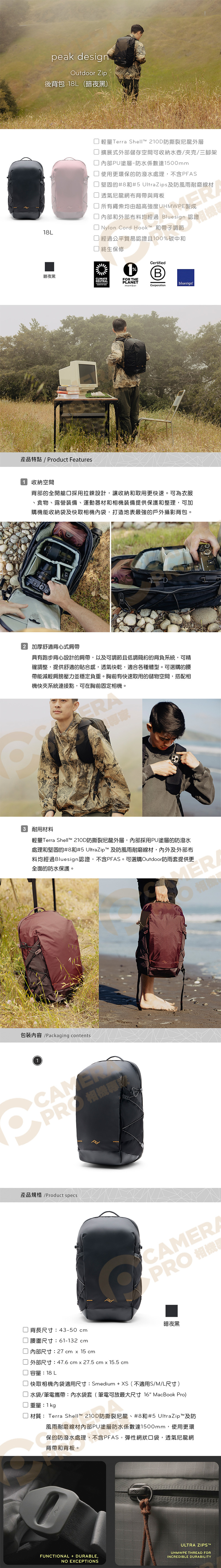 PEAK DESIGN Outdoor Zip 後背包 18L (暗夜黑)