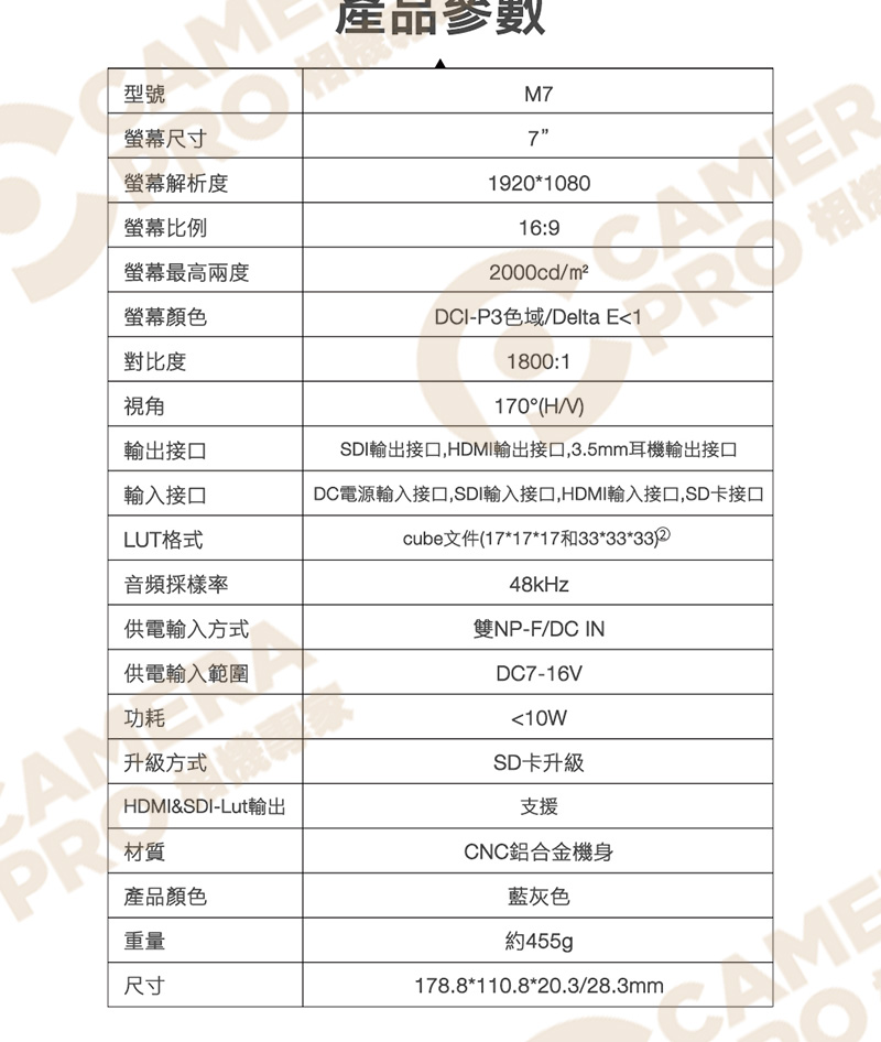 Shimbol M7 7″ Video Recording Monitor 專業攝影監視器