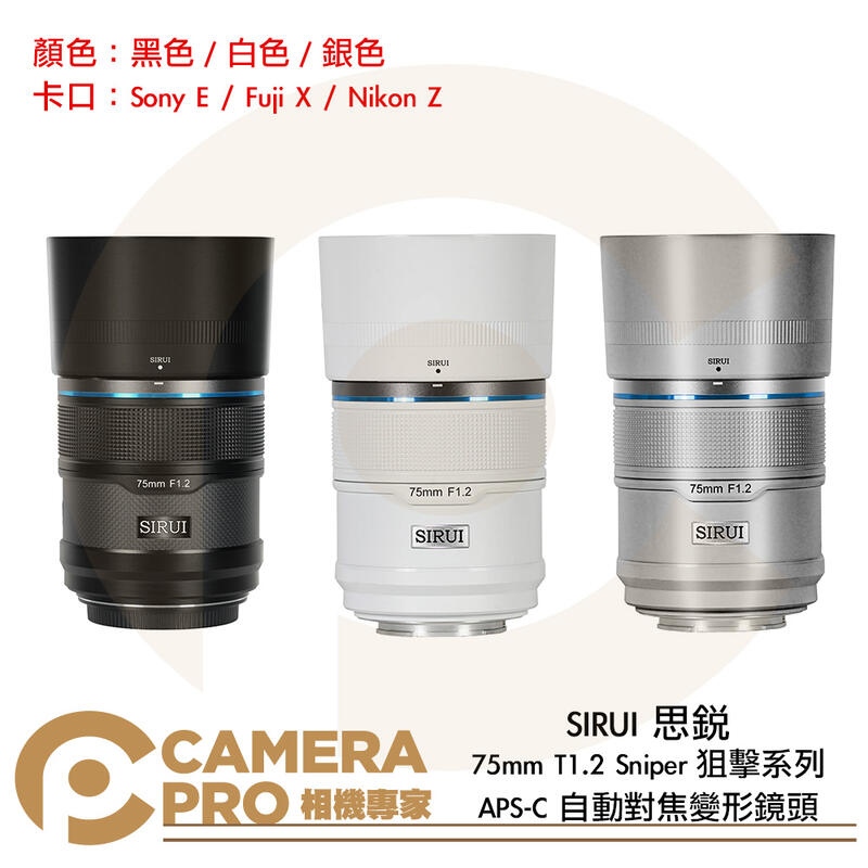 SIRUI思銳 75mm T1.2 Sniper狙擊系列 APS-C 自動對焦鏡頭