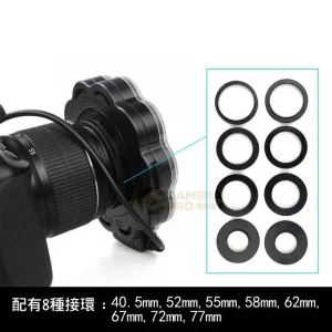 轉接環直徑:40.5mm、52mm、55mm、58mm、62mm、67mm、72mm、77mm (僅適用於上述直徑的鏡頭。)