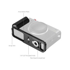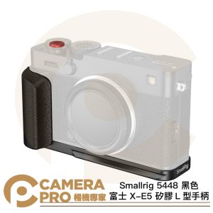 SmallRig斯莫格矽膠L型手柄(適用於富士X-E5)(黑色)5448是為提昇機身抓握力與握持飽滿度而設計。 L型手握透過底部一顆1/4″-20 螺絲鎖緊固定,底部和手柄內置矽膠,保護機身。手握採用與機身相同的紋理和配色,安裝後與機身緊密貼合,渾然一體。底部內置阿卡規格快裝板,可快速安裝至阿卡規格三腳架(4222 & 4353)拍攝;底部內建1/4「-20螺紋孔,可相容背包快裝系統安裝板5053;底部內建一字板手,按壓即可取出,方便拆裝。手握不影響相機介面全部使用,如電池倉、對焦環、卡槽、喇叭口等介面; 附贈快門按鈕,可提升按壓快門手感。