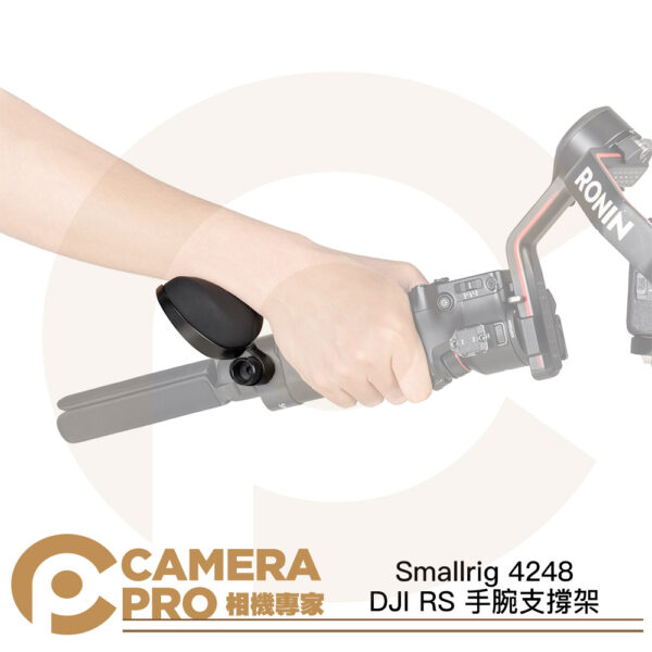 DJI RS Series 4248 的 SmallRig 手腕支撐透過一顆1/4″-20 螺絲固定DJI RS 4 / RS 4 Pro / RS 3 / RS 3 Pro / RS 2 的底部,並配有符合人體工學的柔軟矽膠支撐墊,方便拍攝。附4118 / 4383的QD 孔。