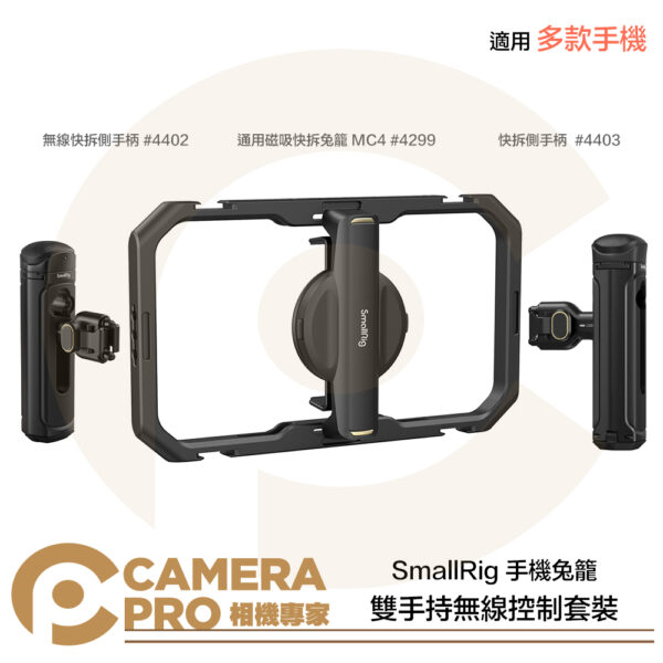 SmallRig 通用磁吸快拆手機兔籠 雙手持無線控制套裝 (4299 + 4402 + 4403)