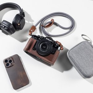 SmallRig斯莫格相機皮套套件(適用於尼康Z f) (棕色) 509 6是為保護相機,提升相機復古感和質感而設計。套裝包含:皮套,肩帶。皮套採用PU皮革以及仿鱷魚紋理,增強機身復古韻味和質感;前端內置手柄,後端內置拇指手柄,增加手指抓握力;內置紅線:致敬經典;內部均採用超纖內襯,保護相機防止刮傷;皮套通過底部一顆1/4”-20手擰螺絲與相機安裝,無擰螺絲需額外安裝工具;不遮擋機身接口及按鍵:電池倉,對焦模式,卡槽等;內置鋁合金骨架,不僅能保障貼合度,亦能保護相機,防止磕碰。