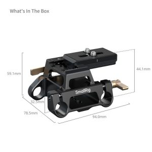 SmallRig斯莫格15mm 雙管安裝座套件(適配阿卡規格) 5365為方便用戶拓展15mm管夾的配件而設計。安裝座可透過一鎖二設計快速鎖定15mm管,然後可在15mm管上拓展鏡頭支撐、跟焦器、遮光鬥、V口電池掛板等配件。安裝座頂部內建阿卡規格,附贈阿卡快裝板可快速拆裝;鎖緊結構採用扳扣設計,鎖緊、解鎖操作簡單快捷;鎖緊扳扣可調節,兼容市面上大多數阿卡規格快裝板。安裝座底部內建1/4「-20、3/8」-16螺紋孔,使用曼富圖快裝板時可實現兩顆螺絲鎖緊,穩固不晃動。