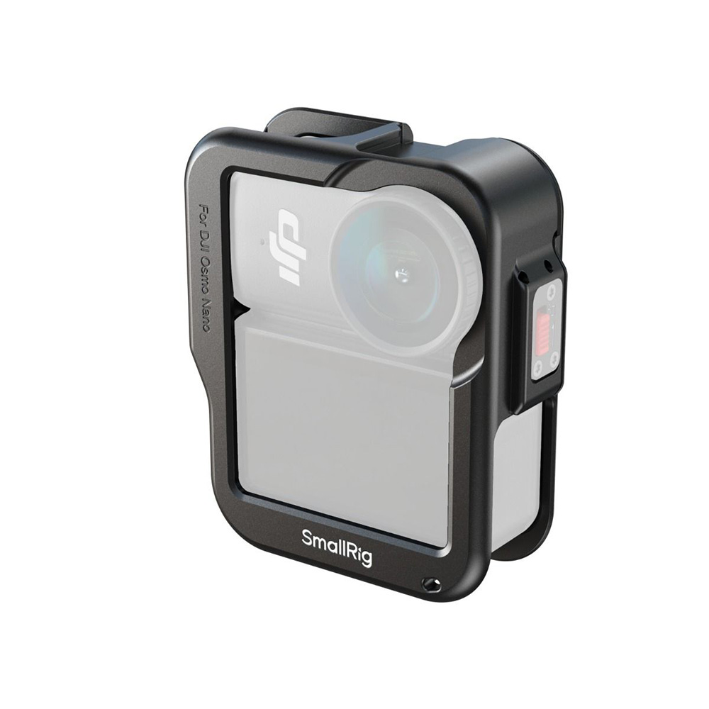 SmallRig斯莫格全包拓展框(適用於大疆Osmo Nano)5759是一款為OSMO Nano相機提供全方位的防磕碰保護並提供輕量化拓展而設計的配件;拓展框採用全包式鋁合金材質;側面解鎖推桿,一鍵側開,方便拆裝相機,內部邊角貼合矽膠設計,全方位元保護相機;拓展框側面和底部開孔巧妙設計,可滿足在便捷的更換內存卡和拓展自拍杆;拓展框還集成冷靴和1/4″螺牙孔,方便用戶拓展拍攝配件,滿足多場景拍攝需求;